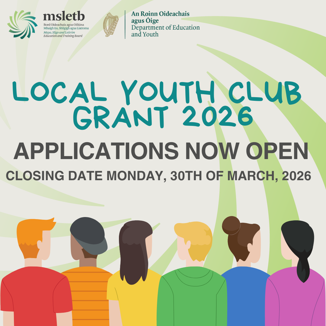 Mayo, Sligo and Leitrim Education and Training Board is the leading provider of education and training in the region. As an integral part of our communities, we deliver educational services to 30,000 children, young people, and adults through our 19 schools, 12 Further Education and Training Centres, 5 Youthreach Centres and 2 Training Centres. We are responsive to the needs of learners, employers, and communities across the counties of Mayo, Sligo and Leitrim, and aim to provide a positive experience for our learners in a professional, caring and collaborative environment. This operation is co-funded by the Government of Ireland and the European Union.